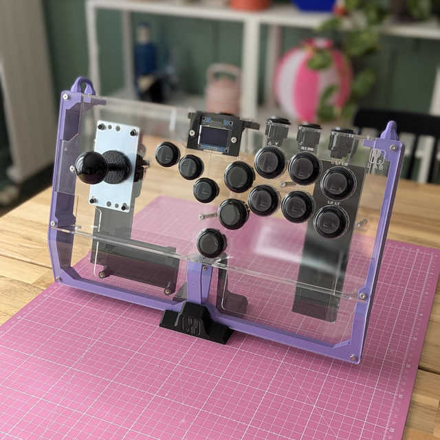 Fully built variant with GP2040 breakout board 5.6E, Sanwa JLF stick, Qanba Gravity LX button (as pictured) and wiring is available.